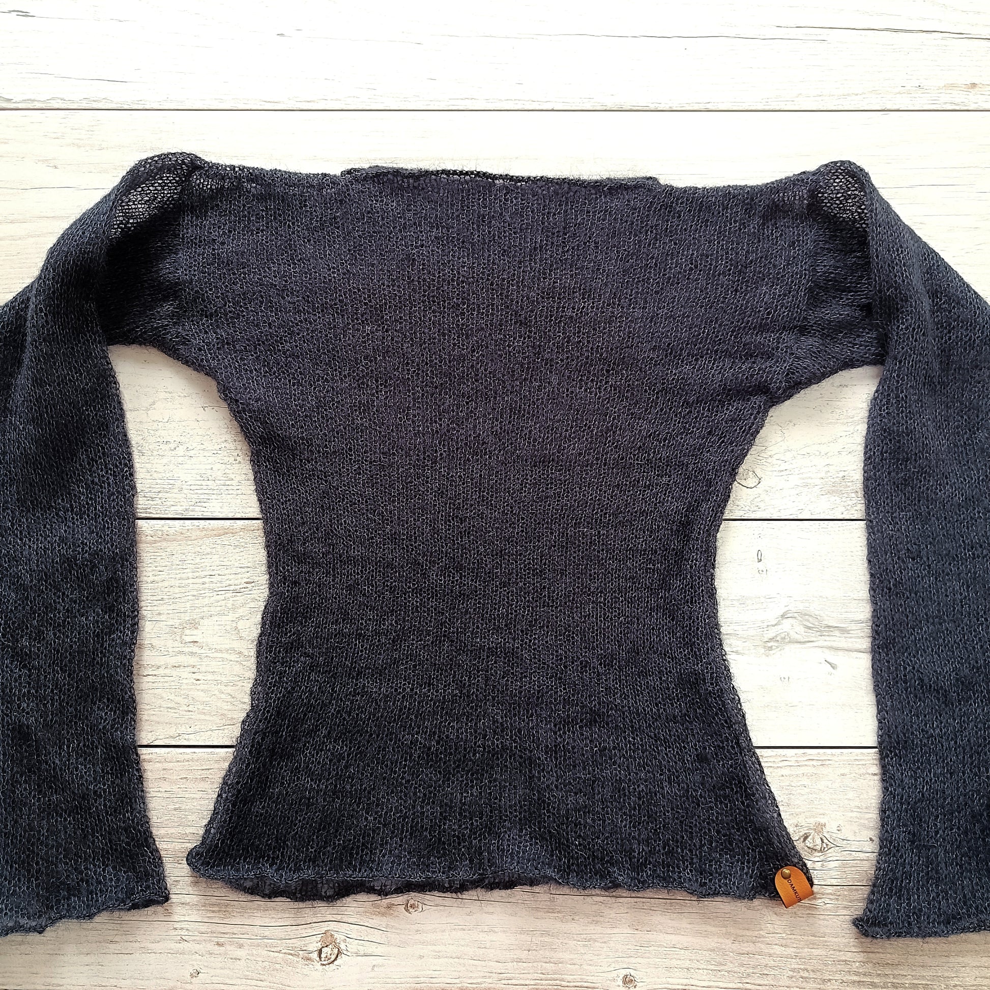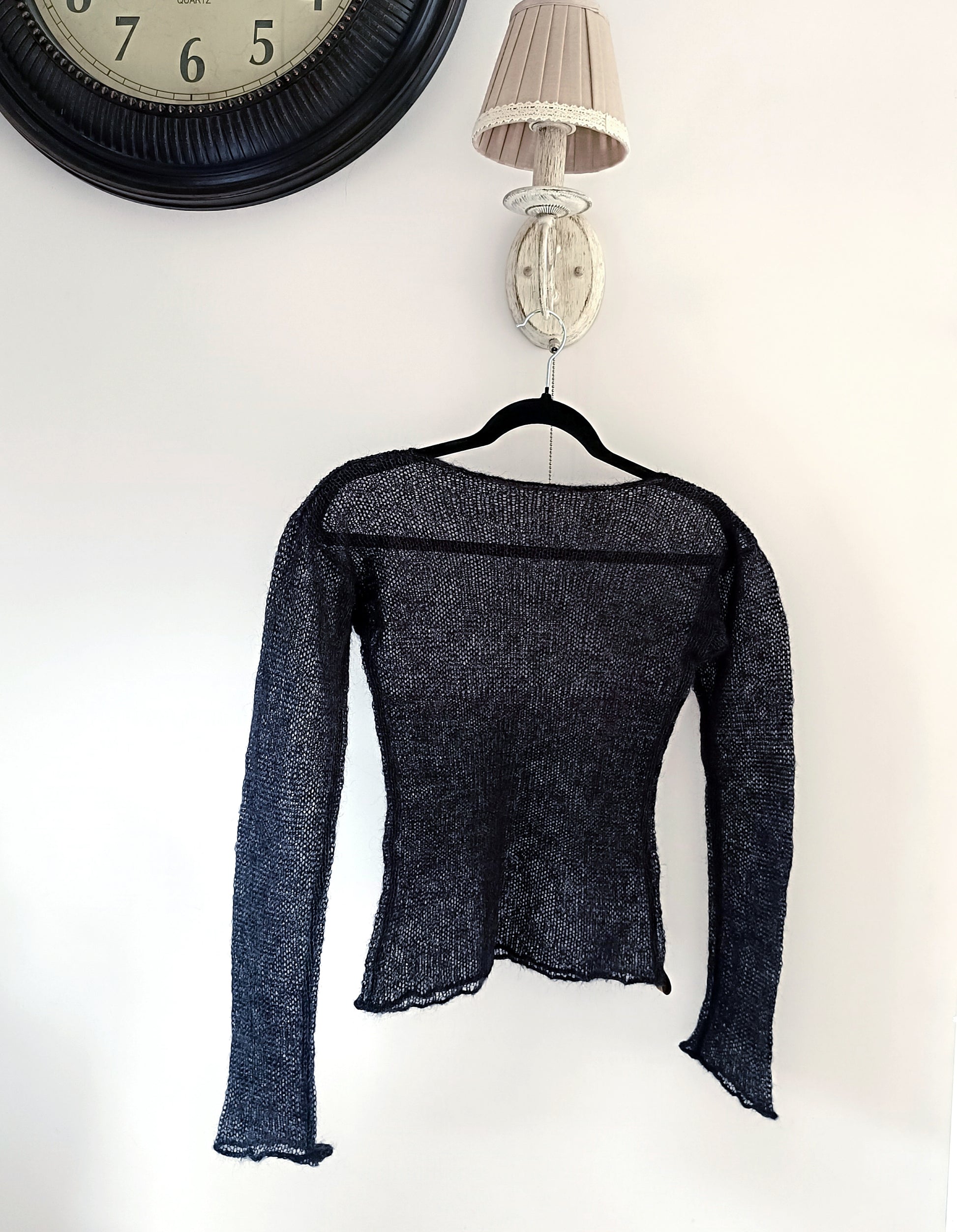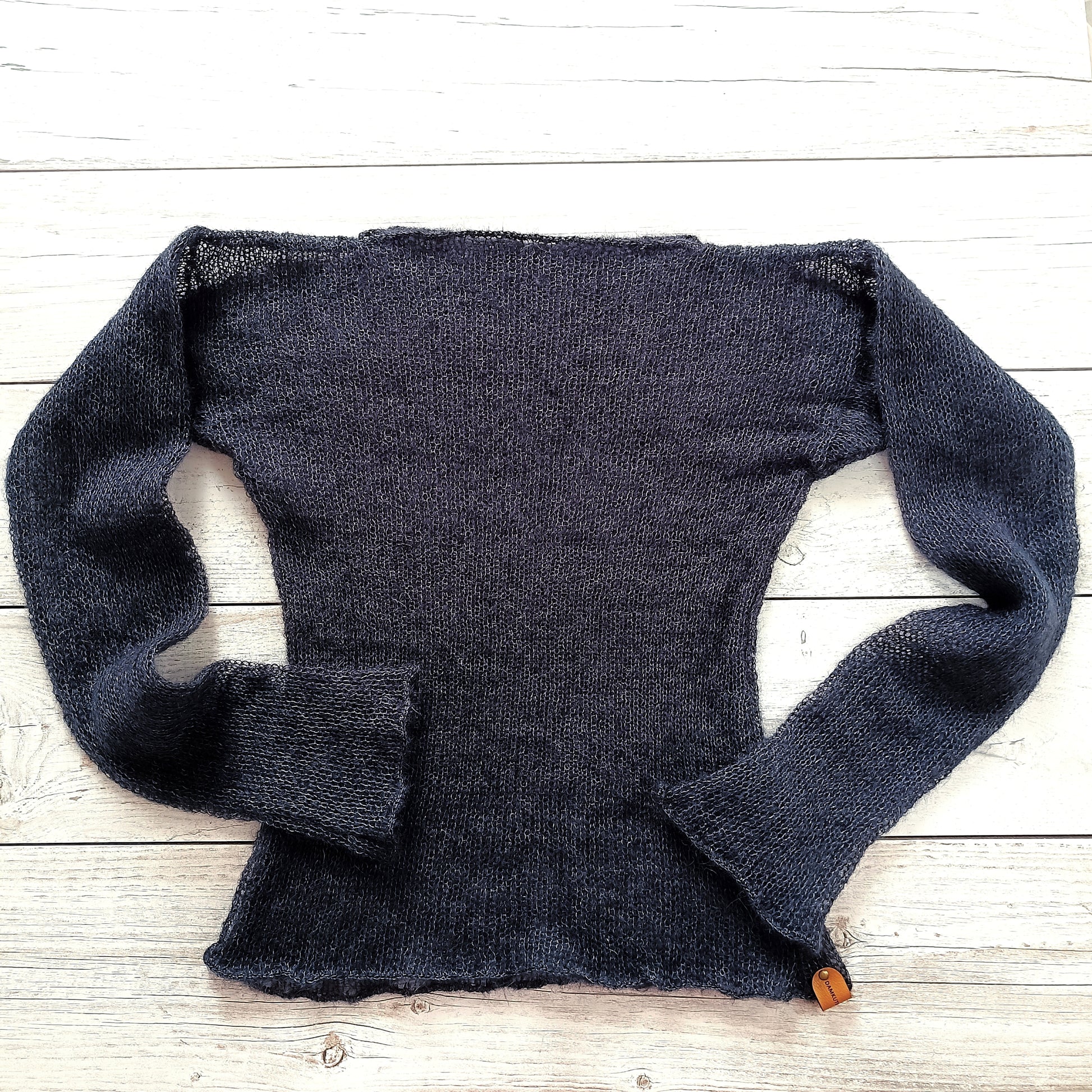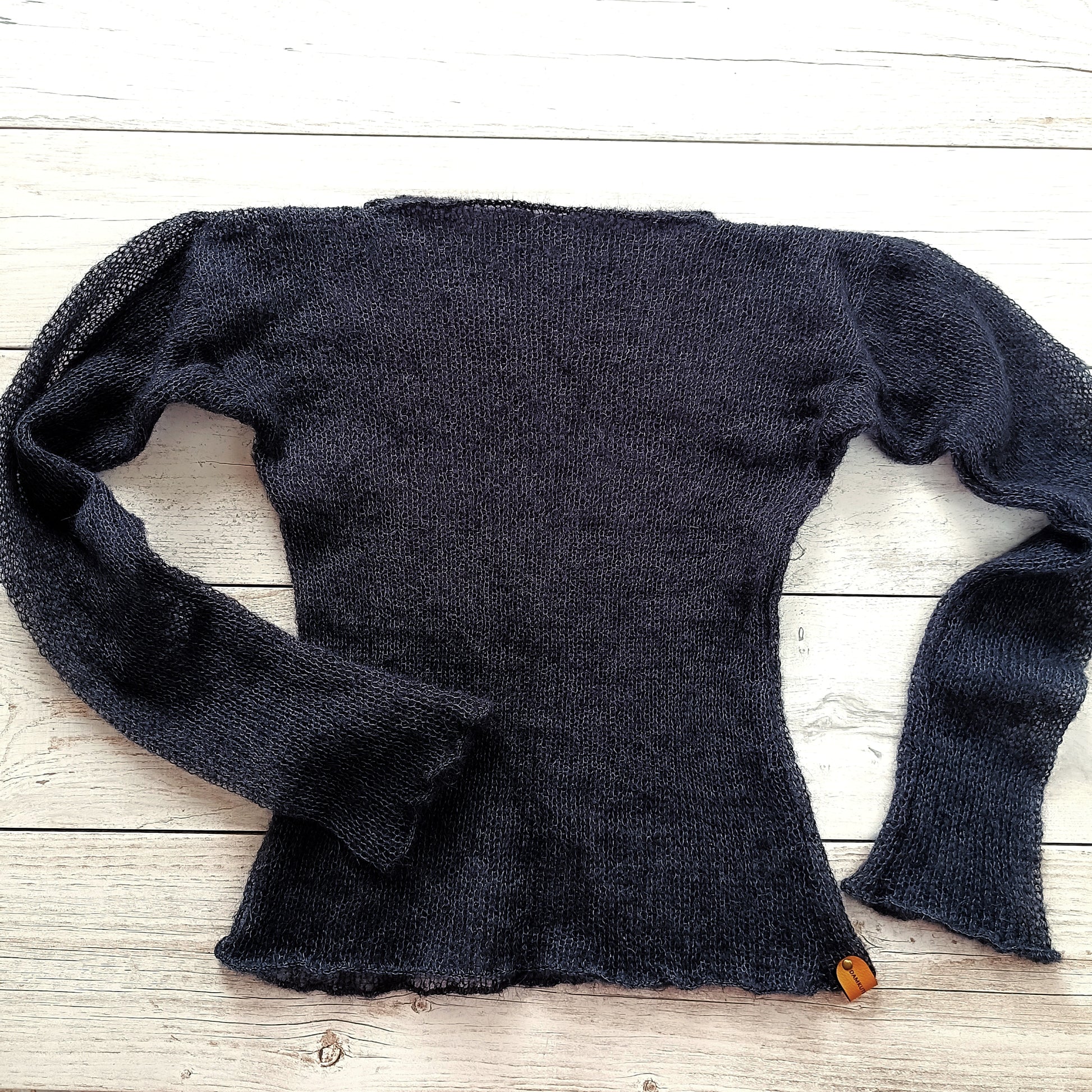 Black Mohair Silk Sweater: Fitted Lightweight Knit Top S M L XL