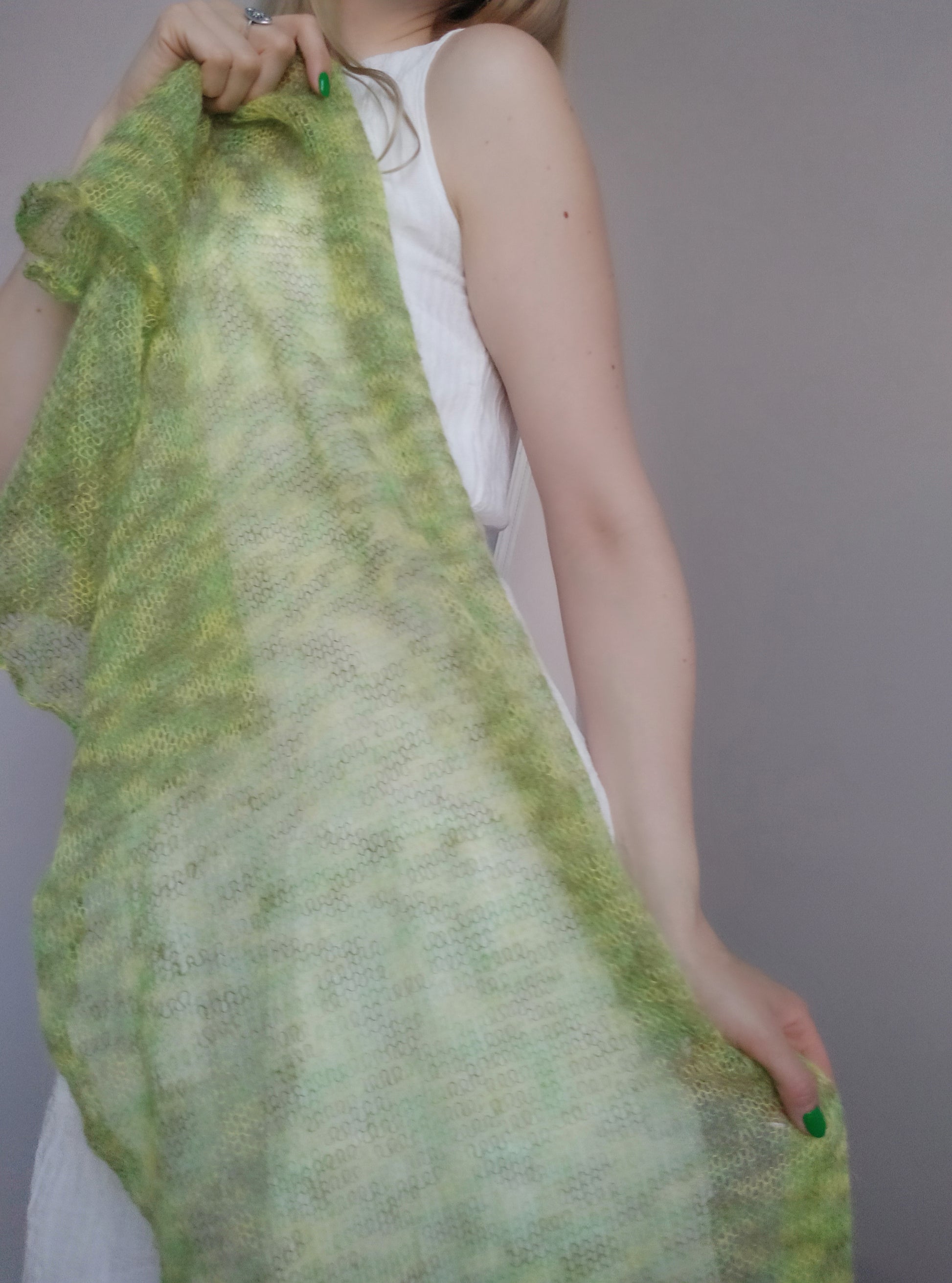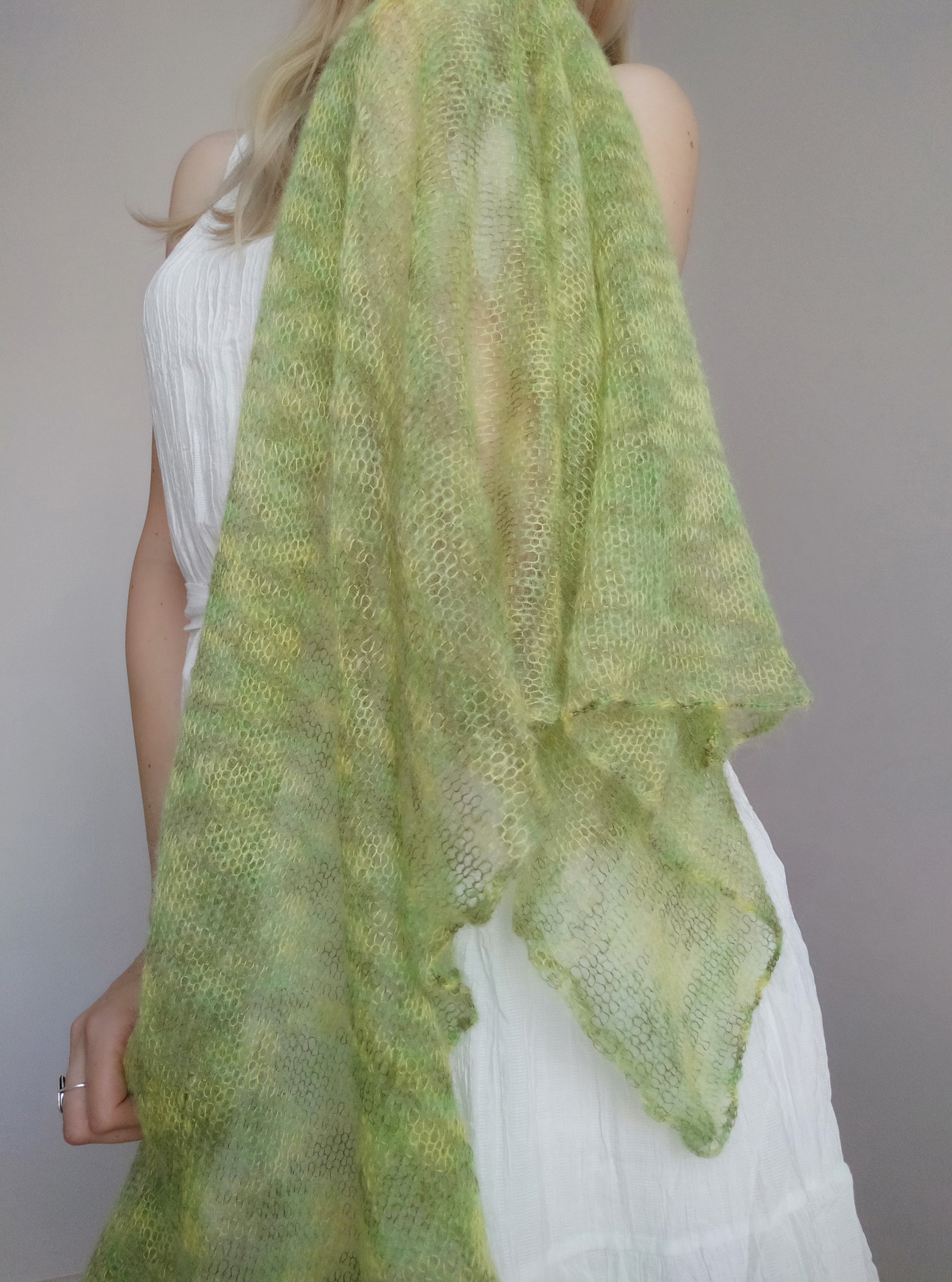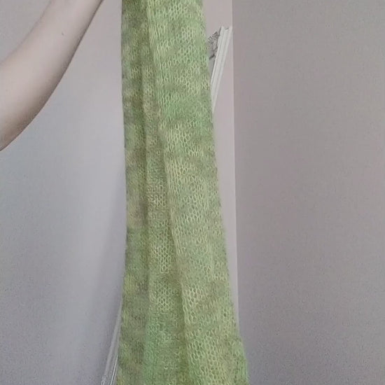Lime Green Mohair Shawl: Lightweight Elegant Knit Scarf