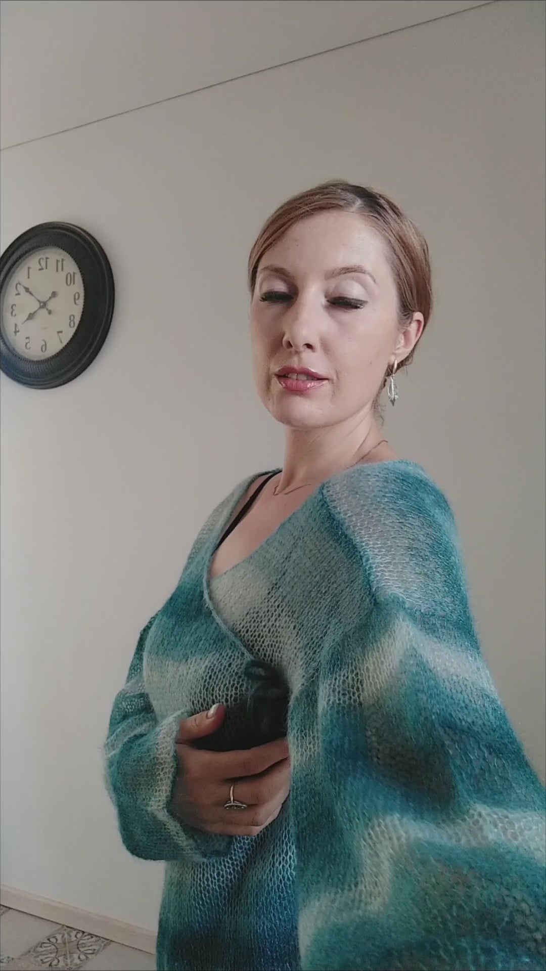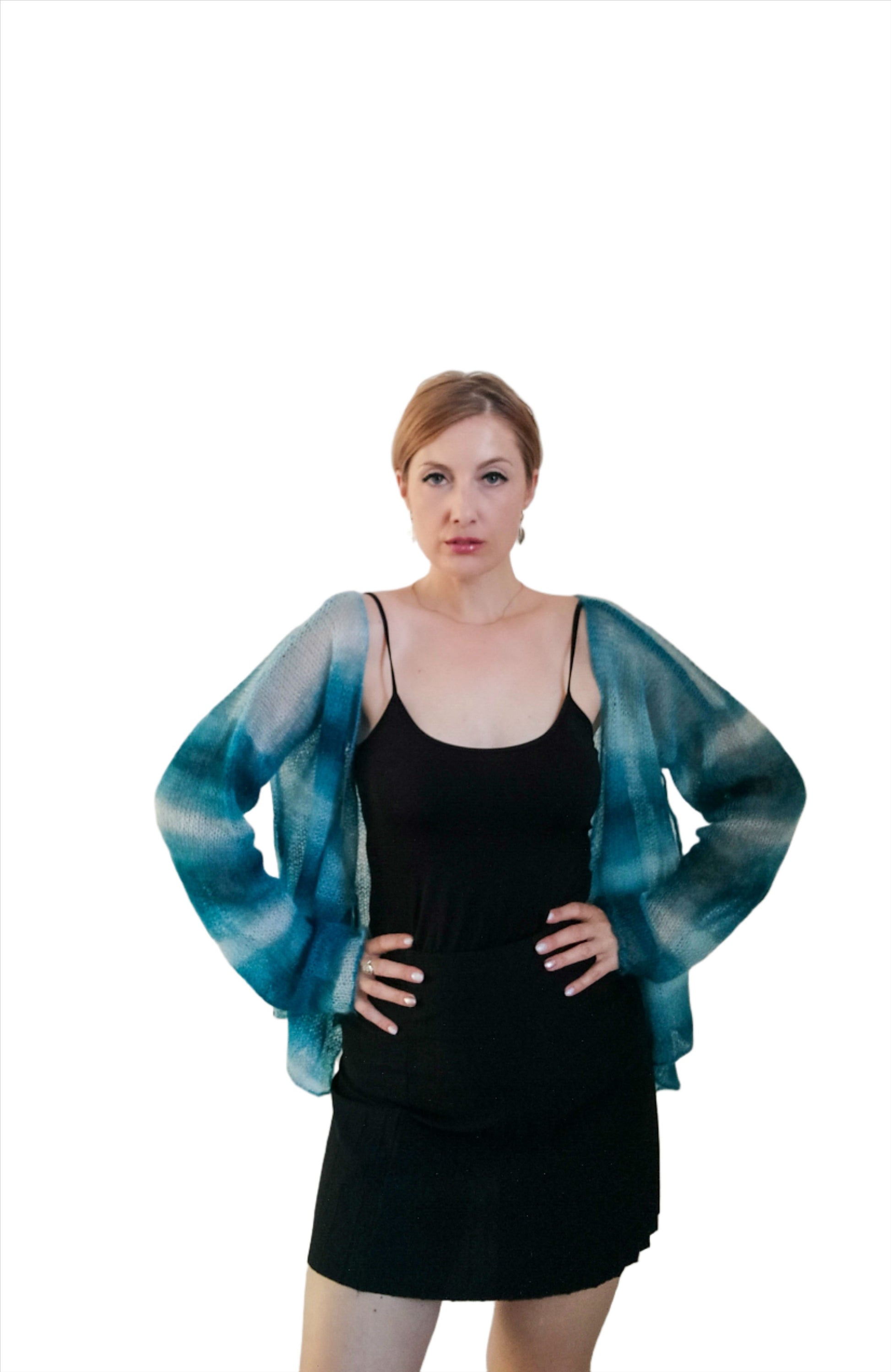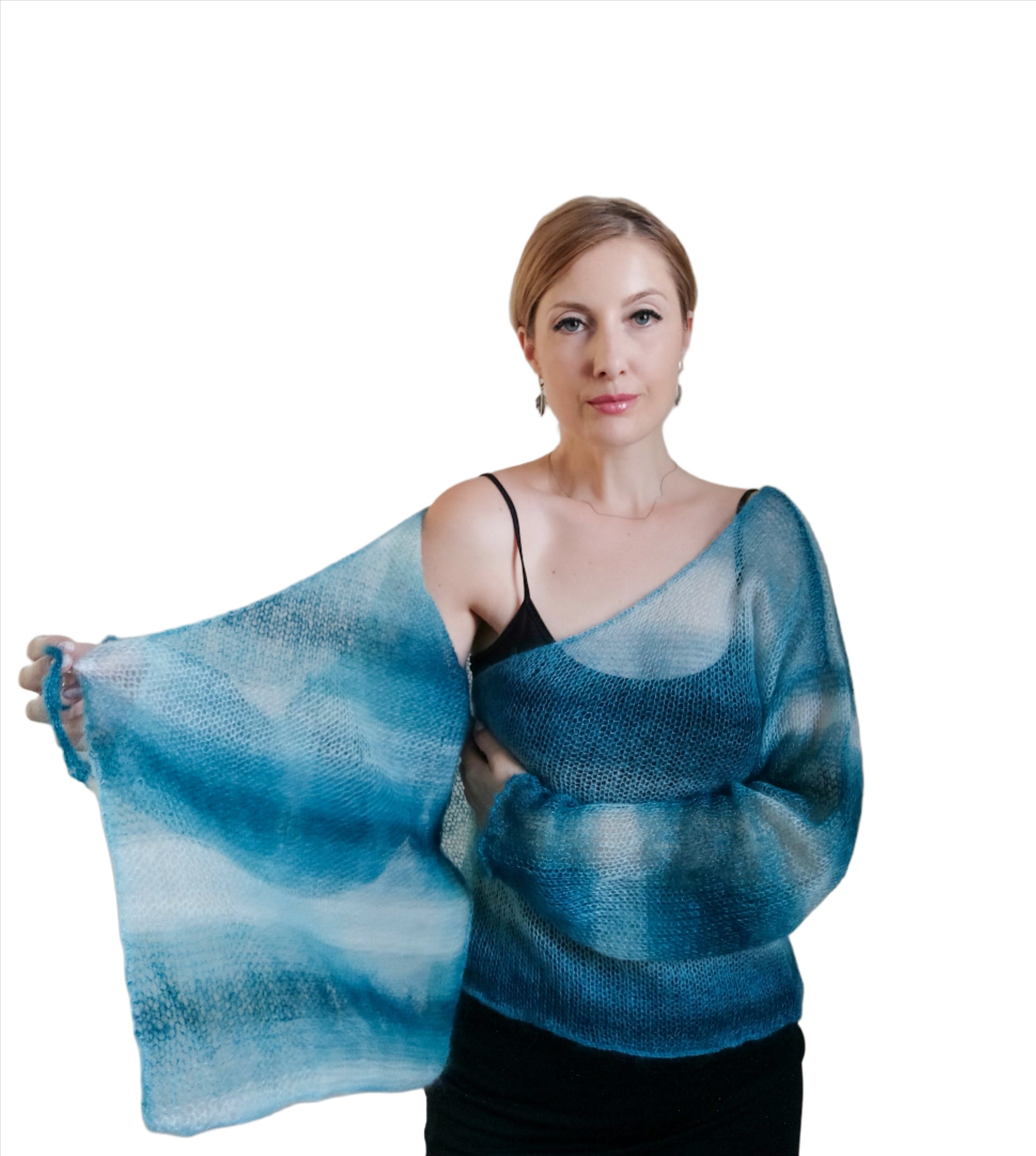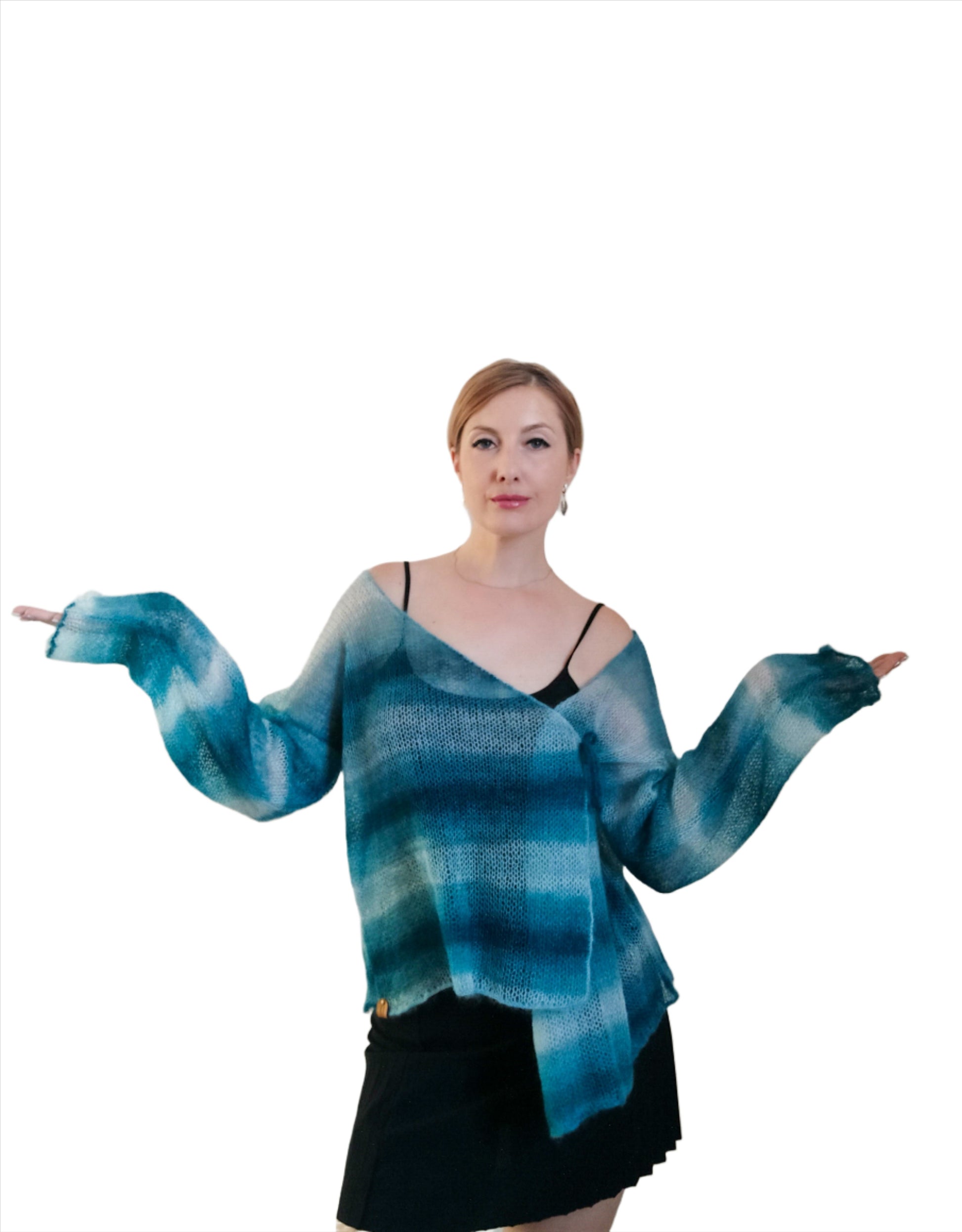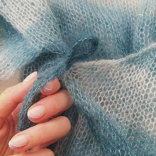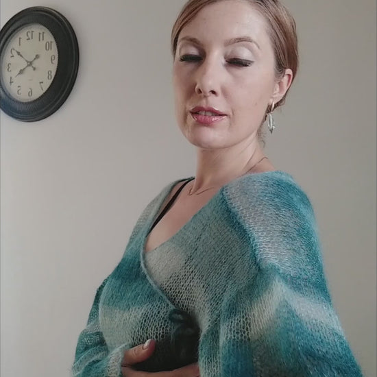 Exceptionally Lightweight And Soft Tie Side Mohair Cardigan Petrol Blue