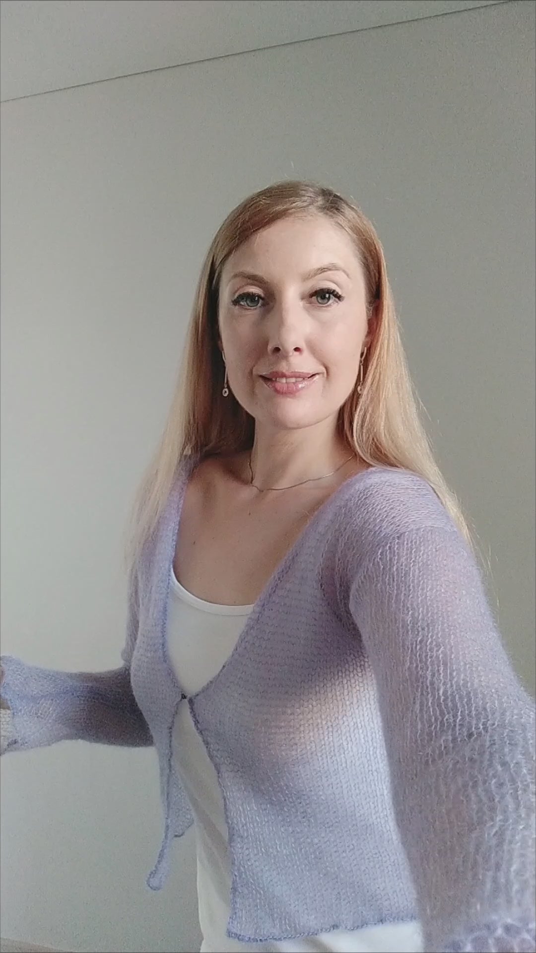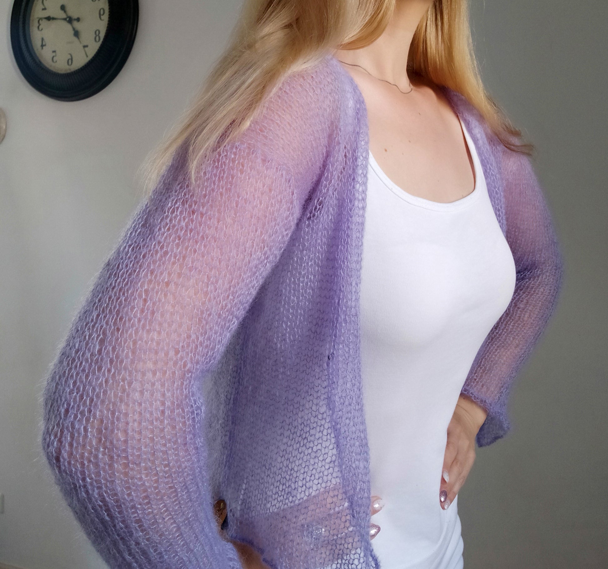 Lavender Lightweight Mohair&Silk Cardigan Transparent easy Hook and eye closure size S-M Soft