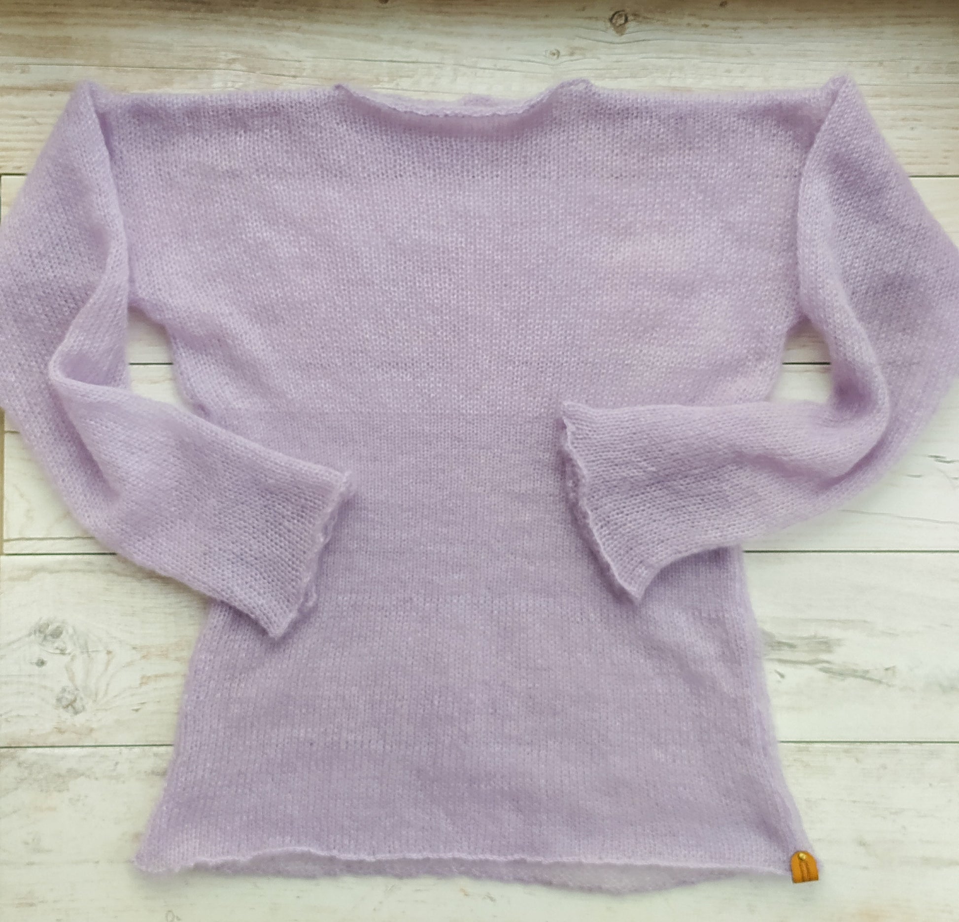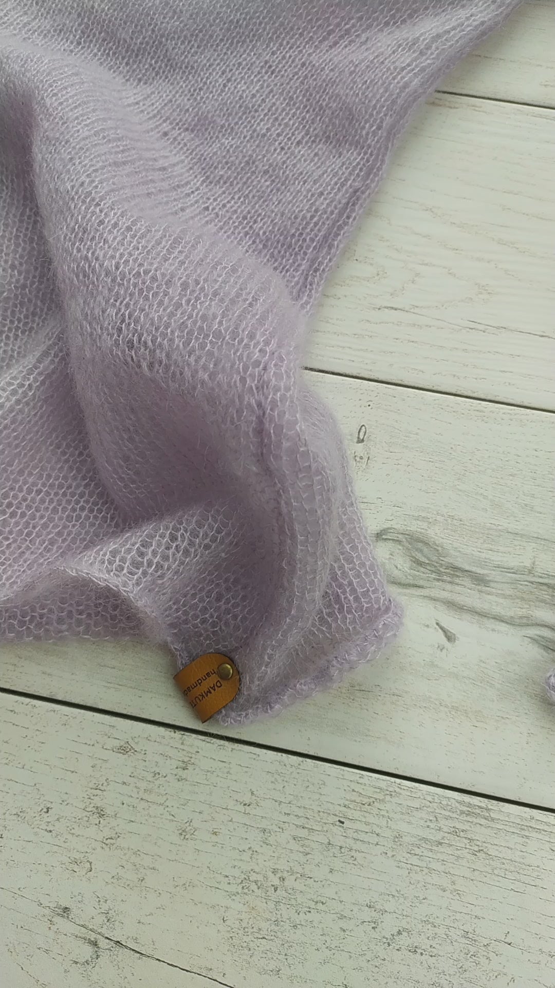 Exceptionally soft waisted lavender mohair&silk sweater with very long sleeves