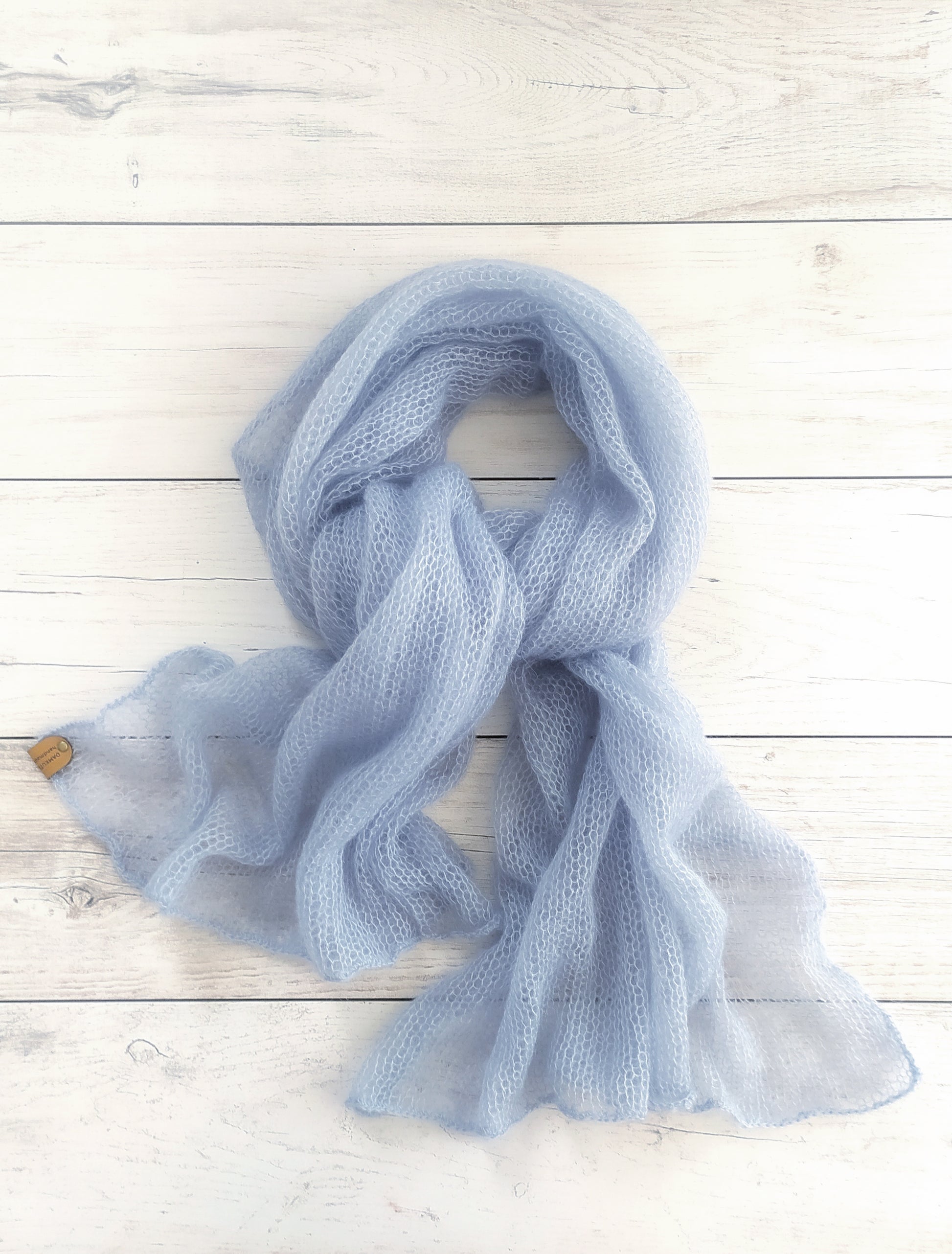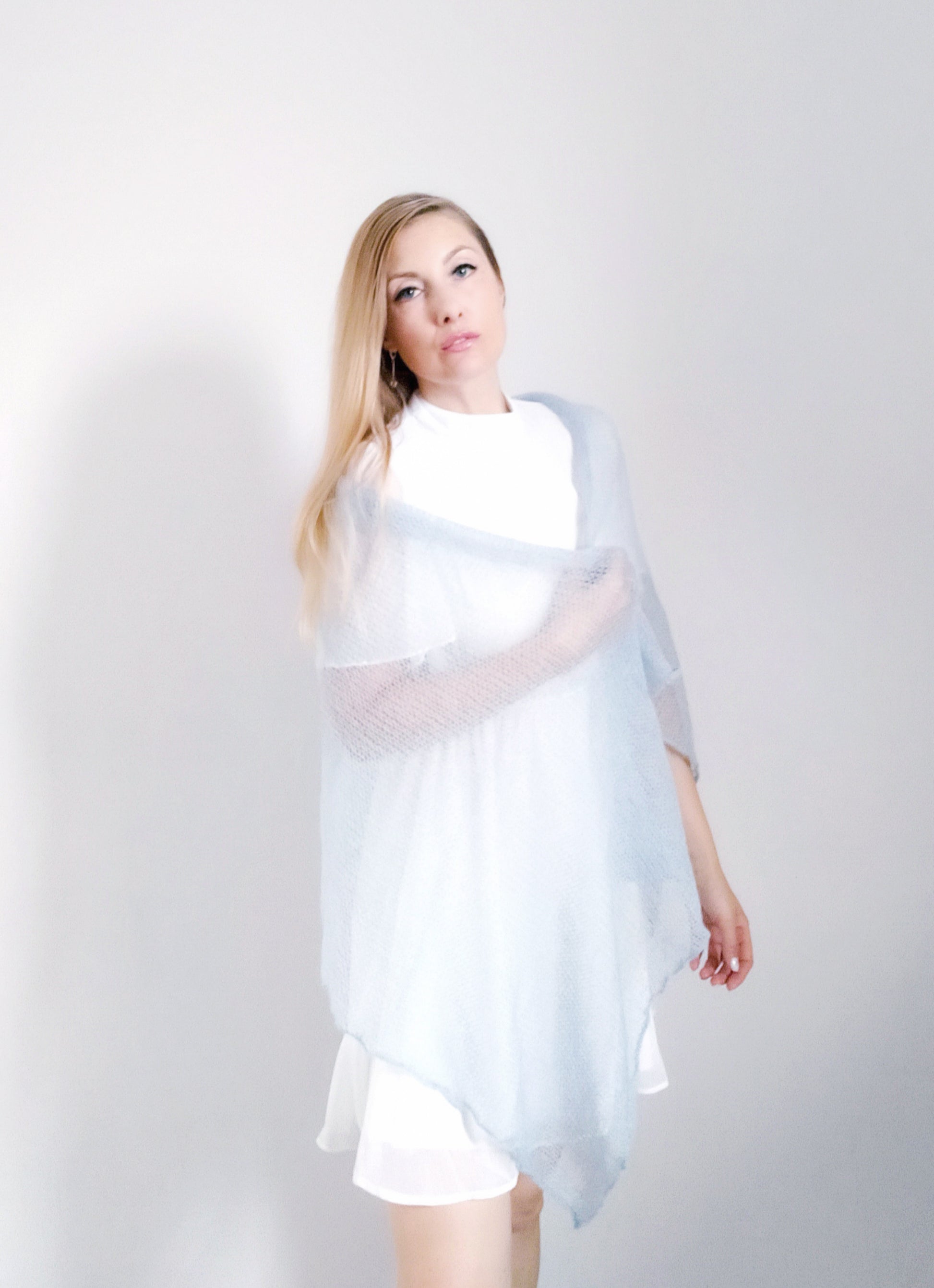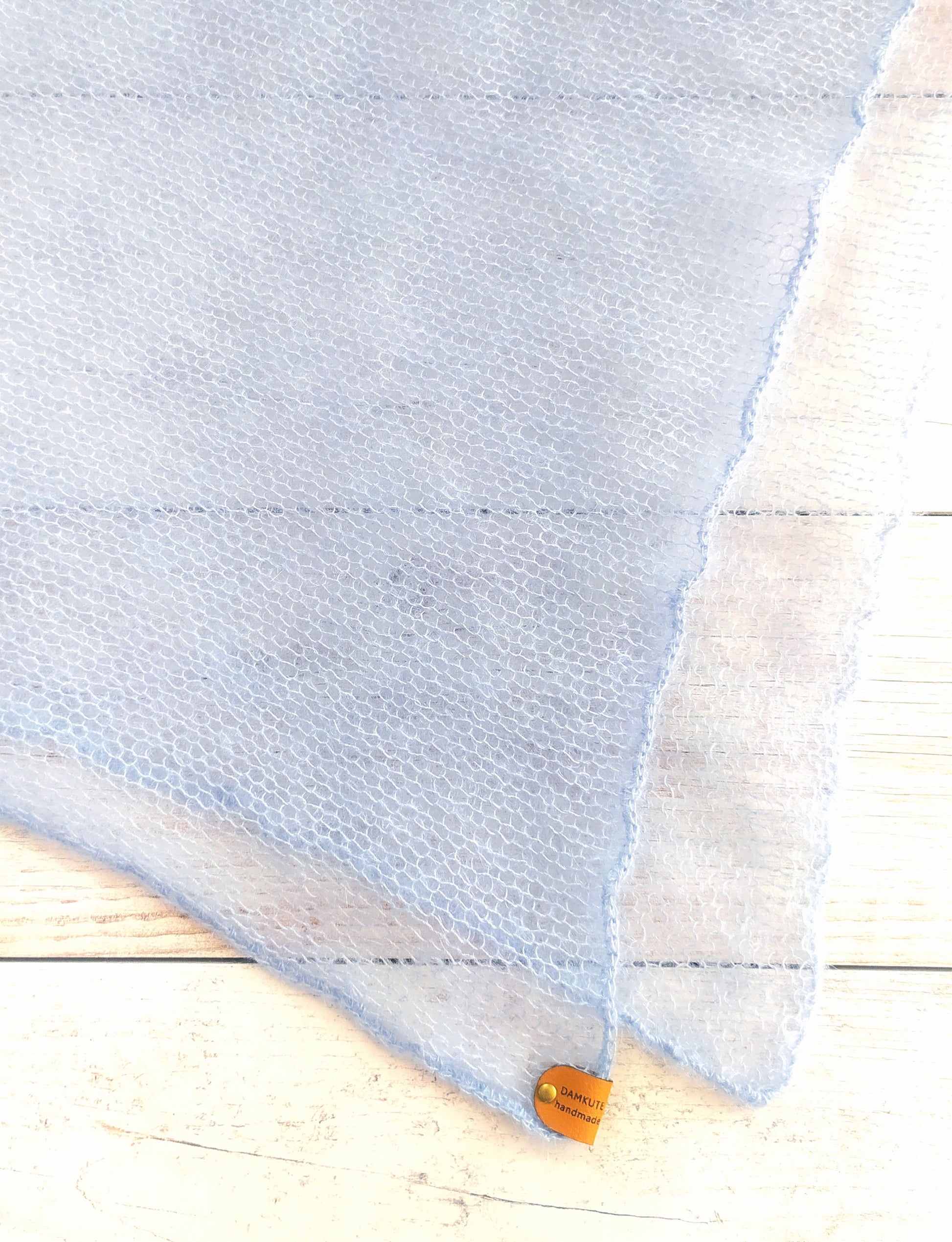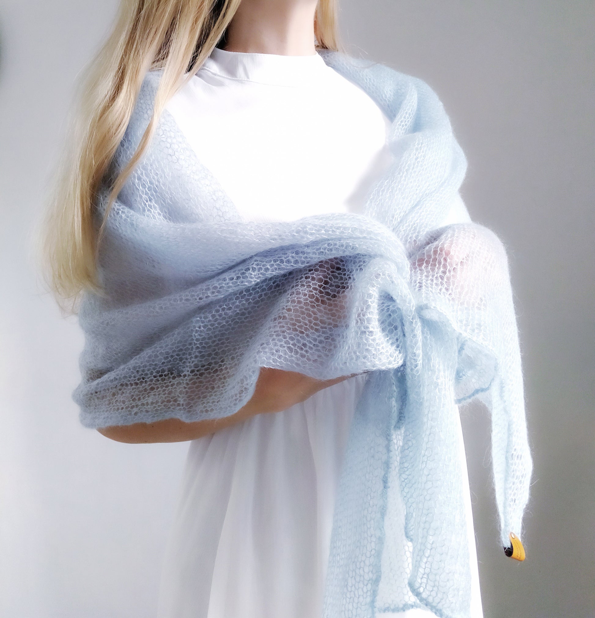 Safe for your skin (Oeko-Tex® certification), soft and light-weight mohair and silk yarn. Handmade in Lithuania and ready to ship. Breathable to keep you warm in winter and cool in summer. Transparent elegant shawl is suitable for every day and for going out.