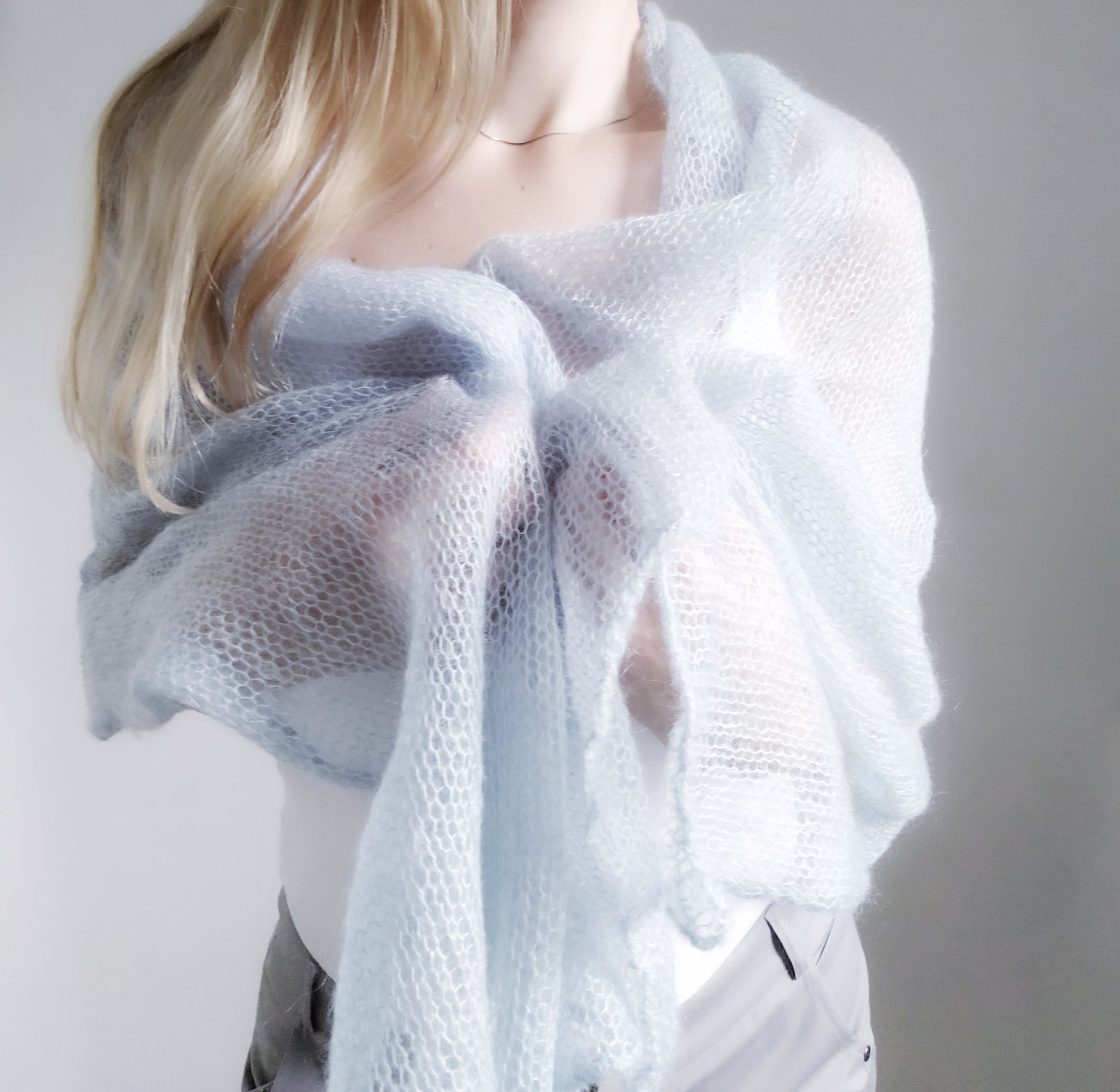 Light Sky Blue Mohair Silk Shawl: Lightweight Elegant Wrap
