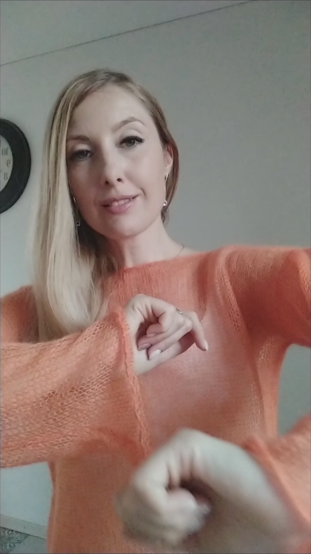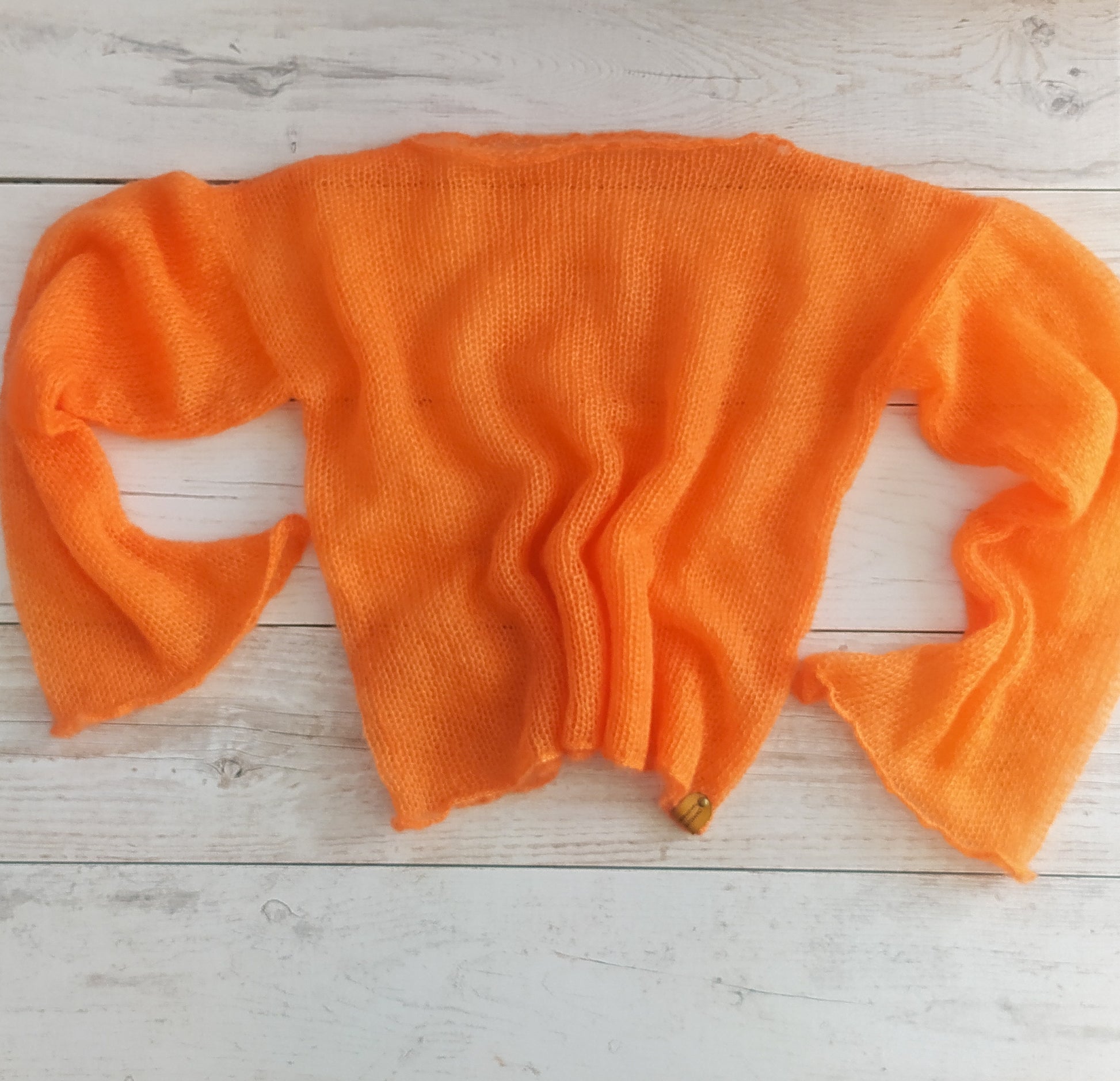 Mohair Silk Bell Sleeve Sweater: Lightweight Orange Knit XS-S-M