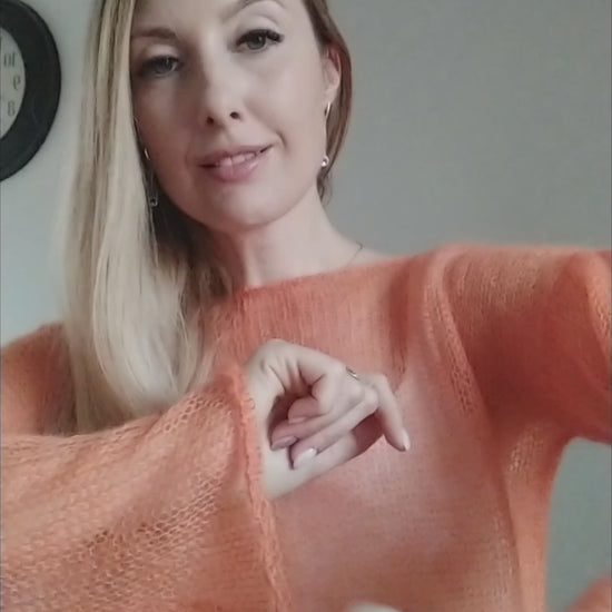 Safe for your skin (Oeko-Tex® certification), soft mohair and silk yarn. Handmade in Lithuania and ready to ship. Comfortable and loose, lightweight and compact, designed for life on the go, this sweater folds down small enough to fit in your handbag.