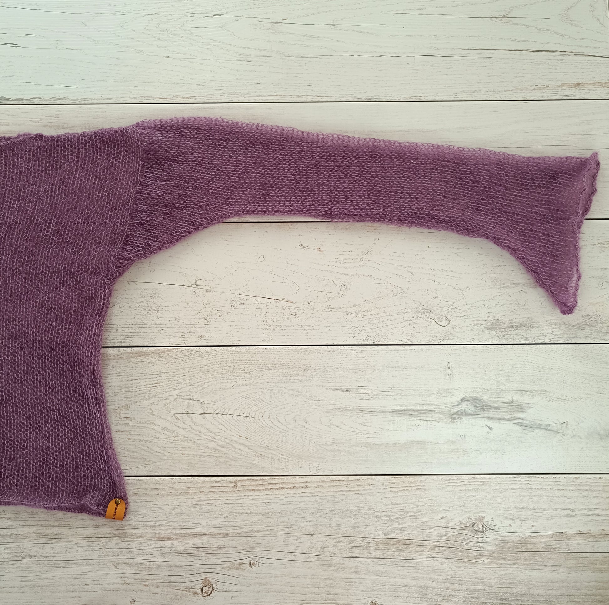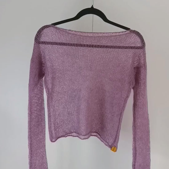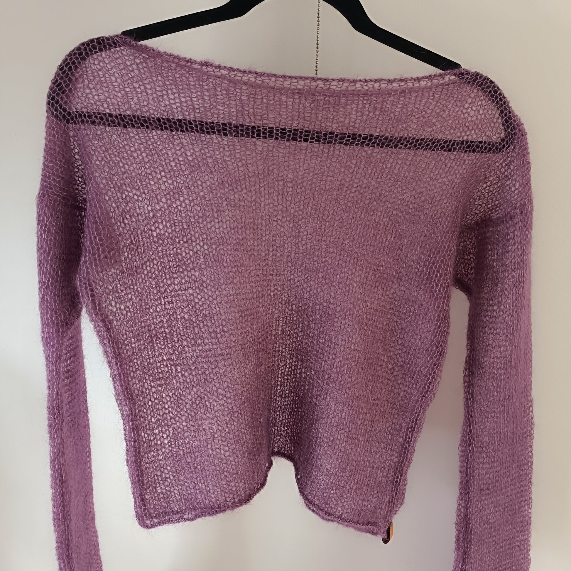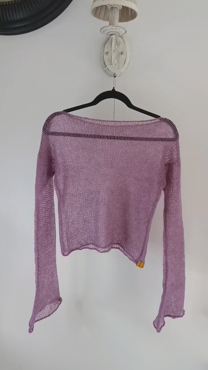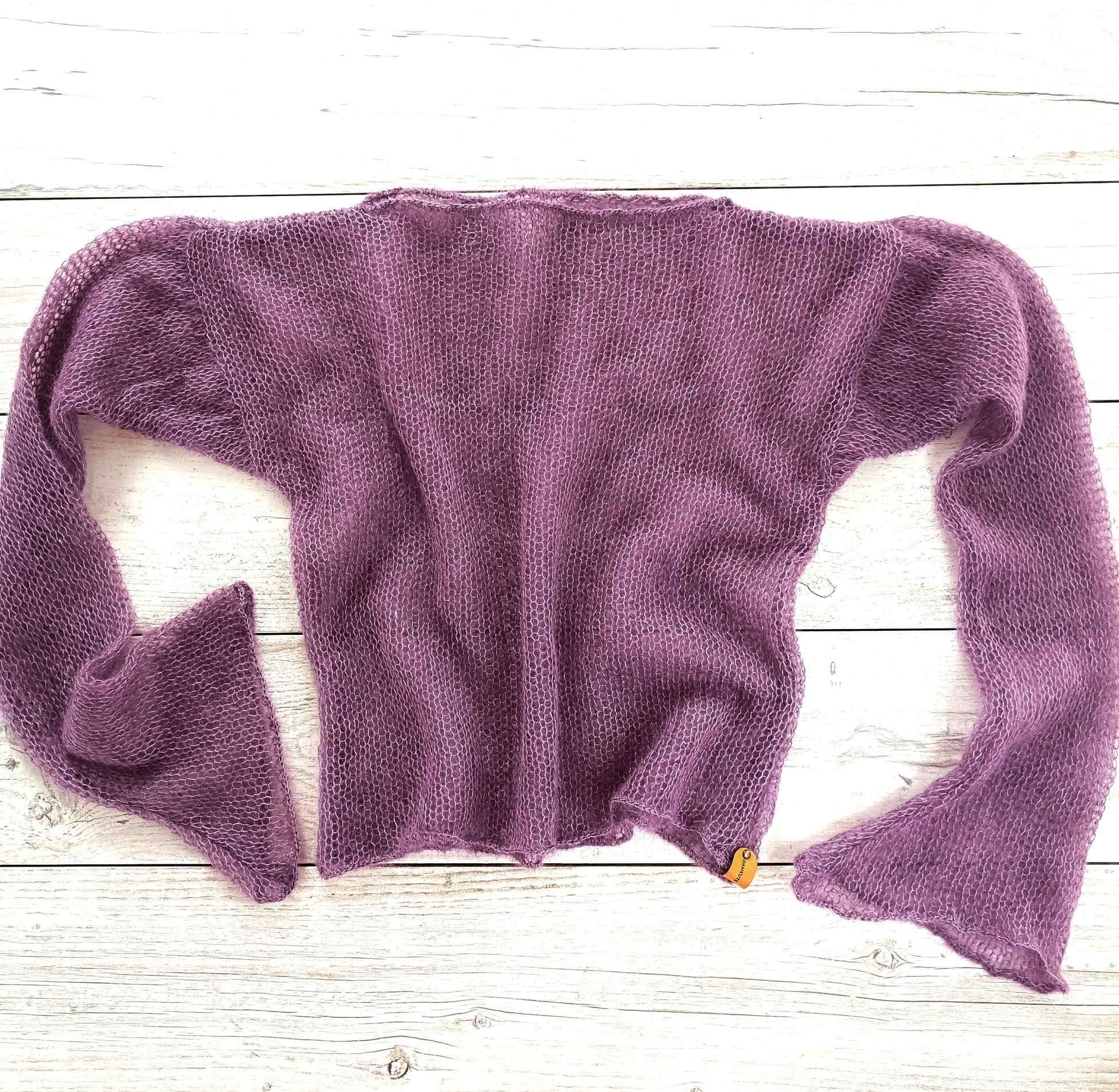 Made to Order Heather Purple Mohair Silk Sweater: Lightweight Bell Sleeve Knit XS-S-M