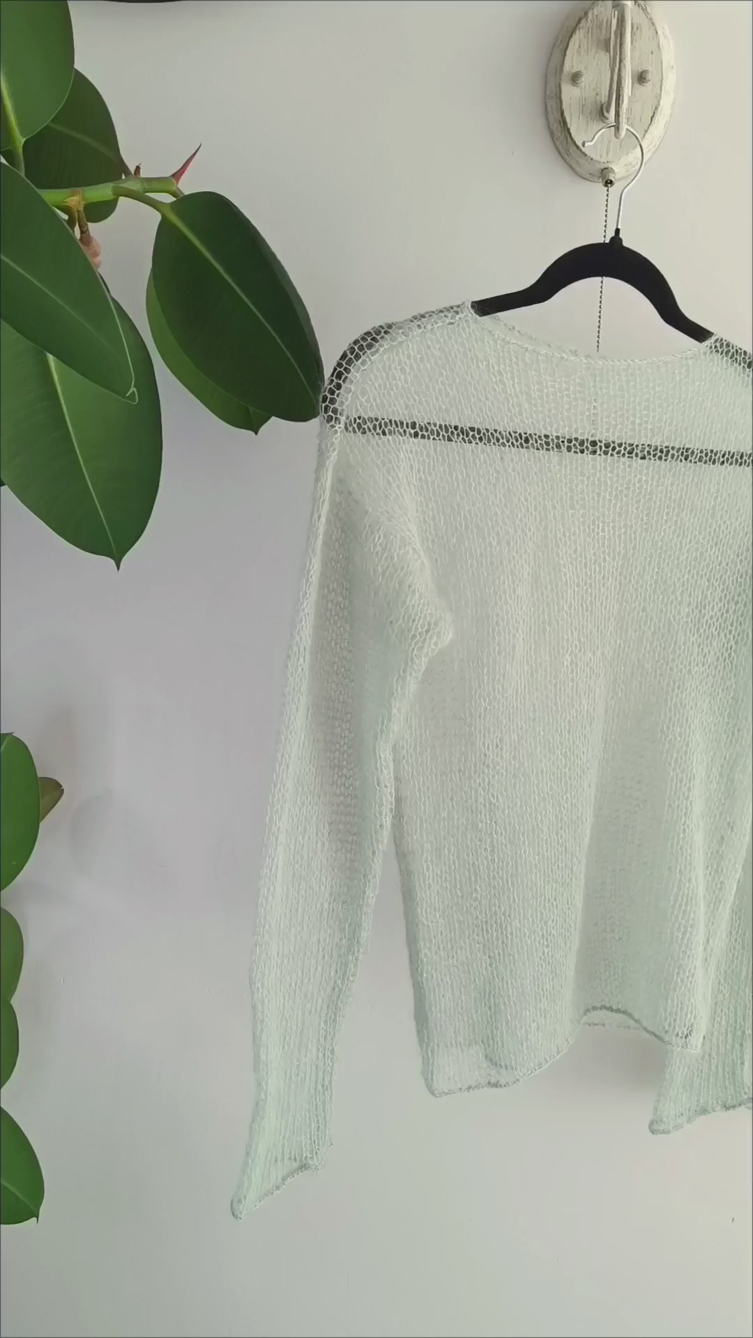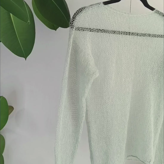 Made to order Soft Mint Green Mohair Silk Sweater: Sheer Knit Top