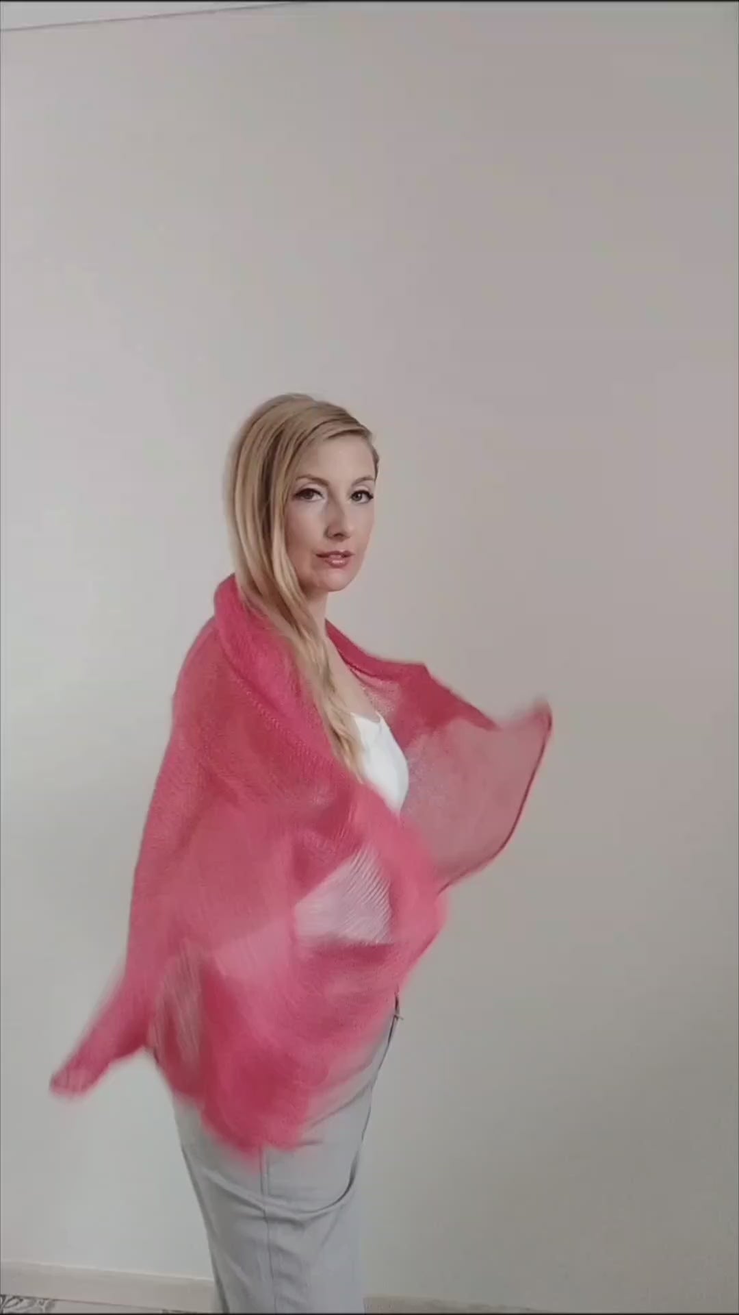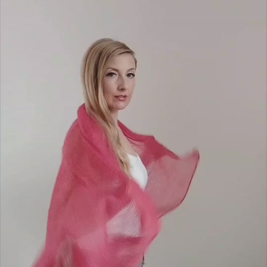 Raspberry Mohair Silk Shawl: Lightweight Elegant Wrap