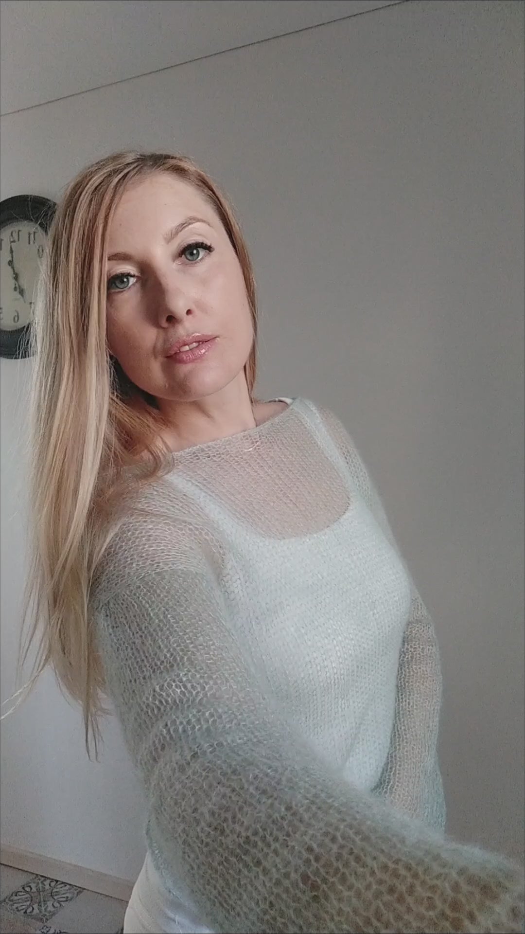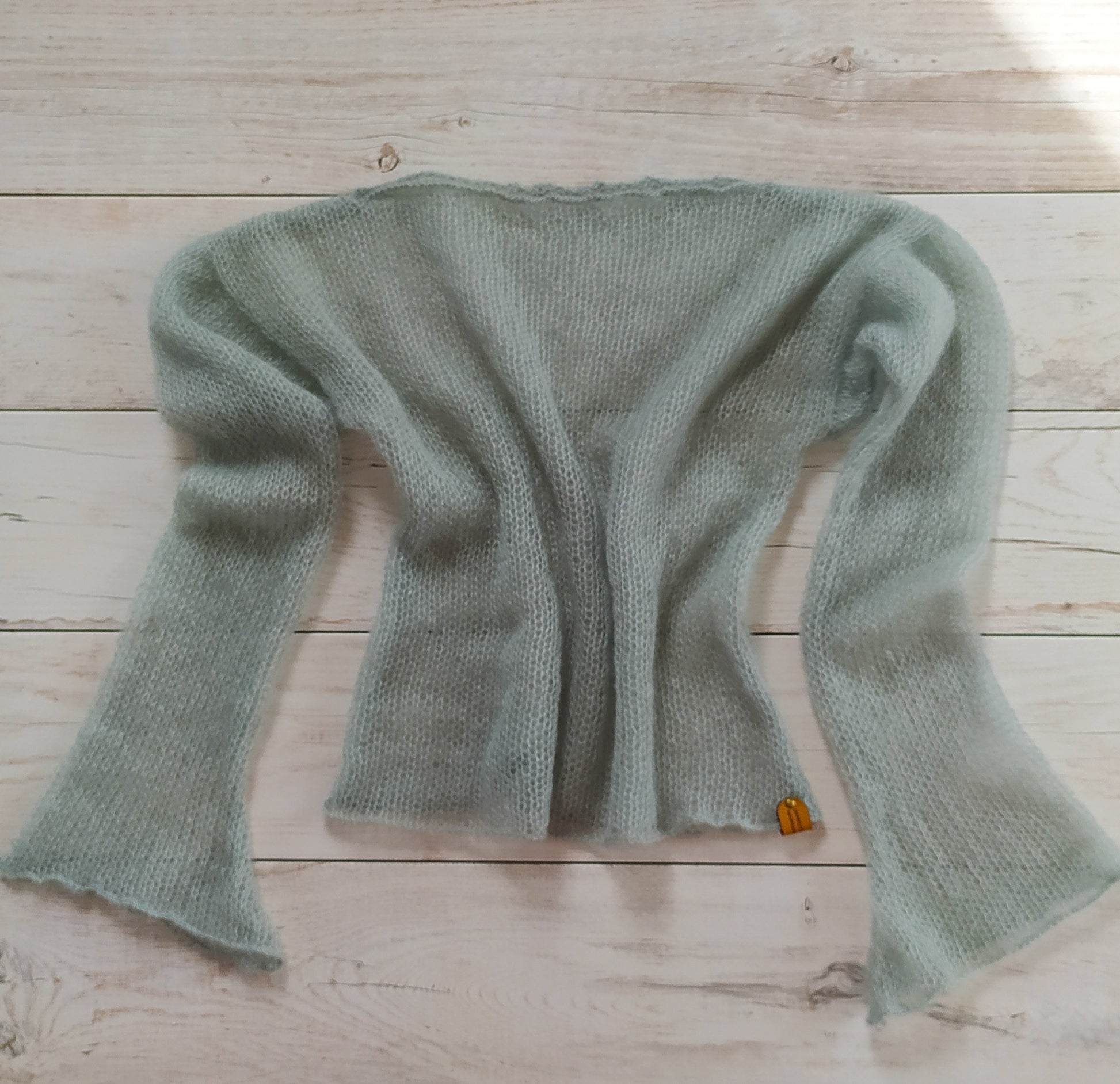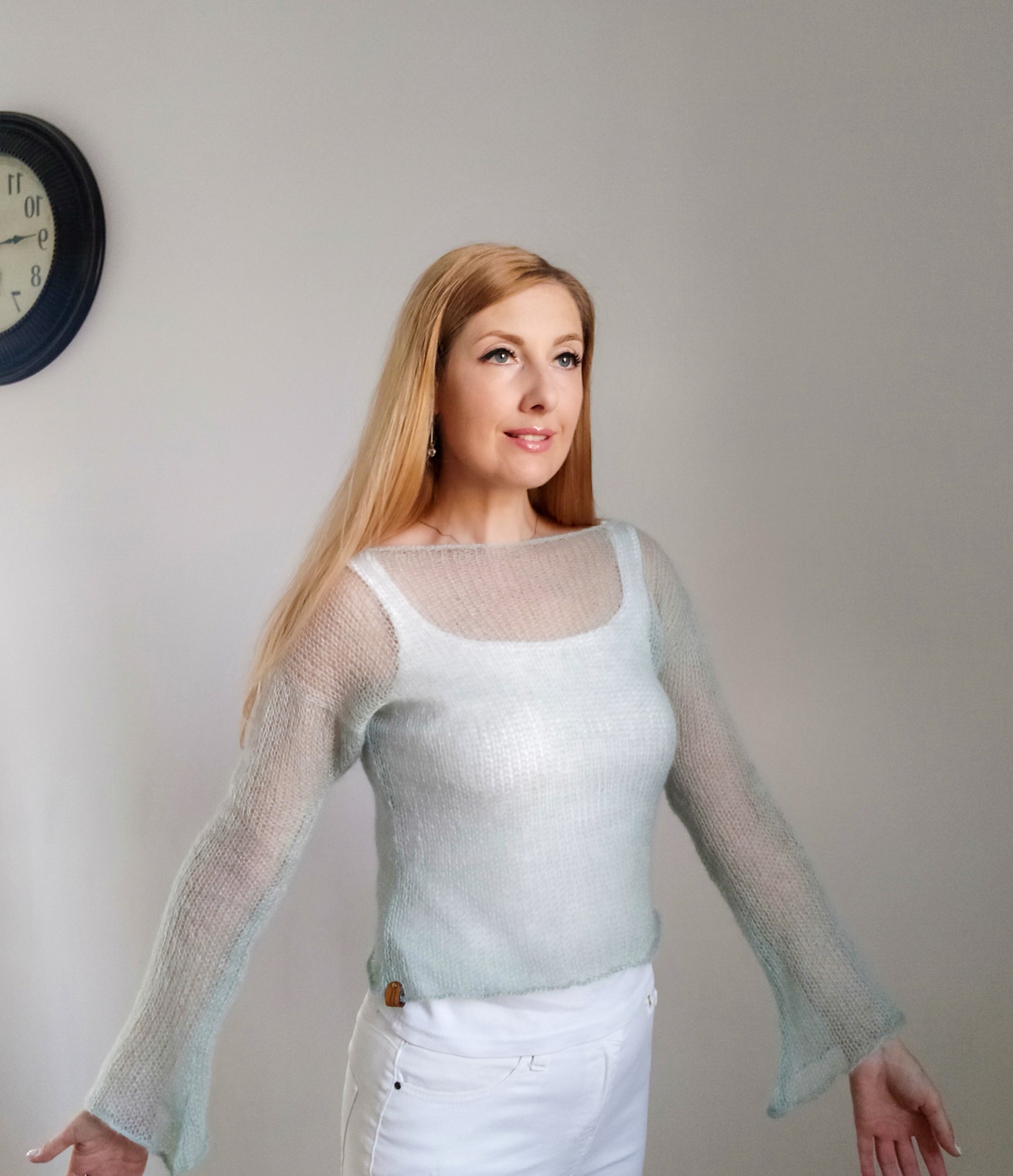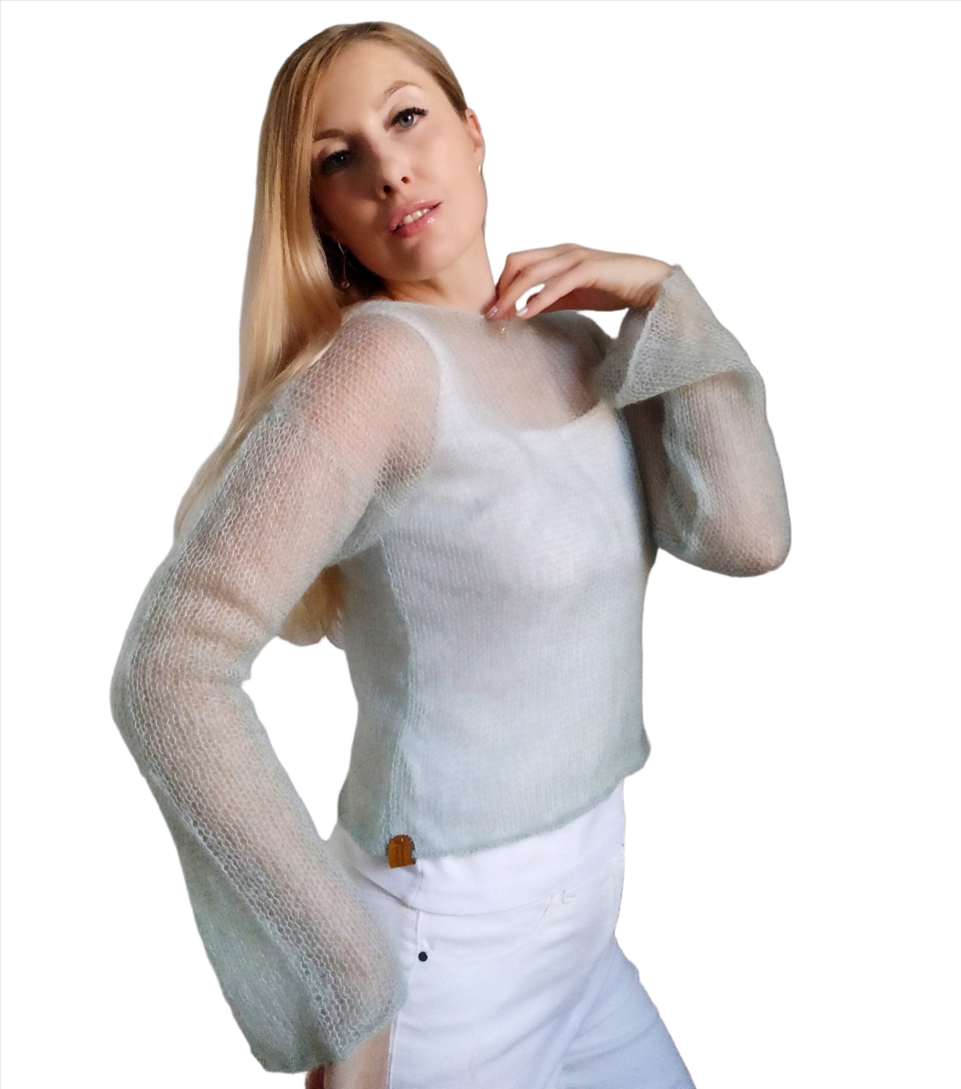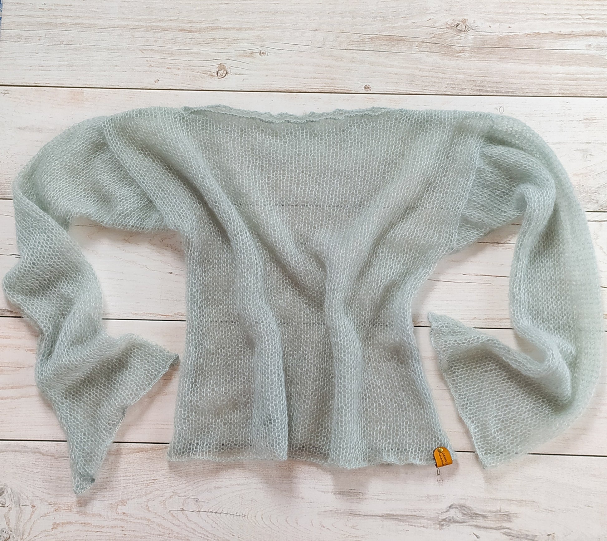Safe for your skin (Oeko-Tex® certification), soft mohair and silk yarn. Short sweater, handmade in Lithuania and ready to ship. Comfortable, lightweight and compact, designed for life on the go, this sweater folds down small enough to fit in your handbag.