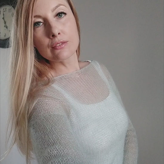 Mohair Silk Knit Sweater: Lightweight Mint Green, Handmade