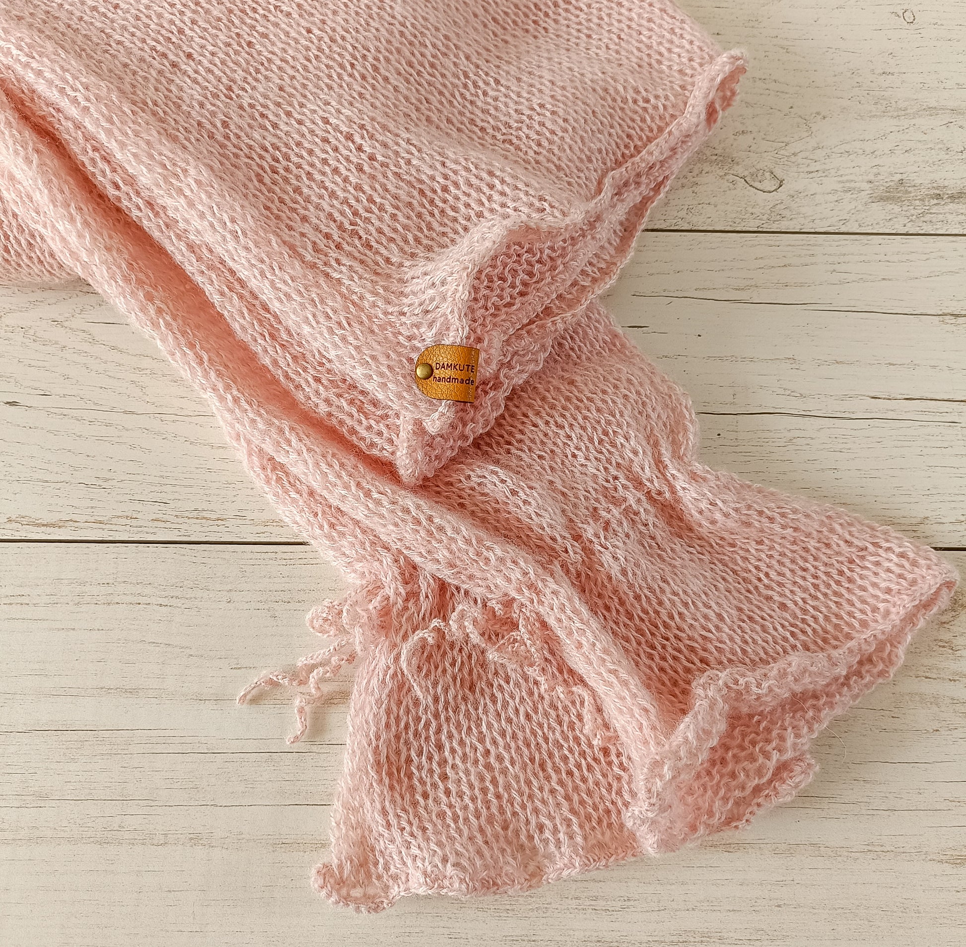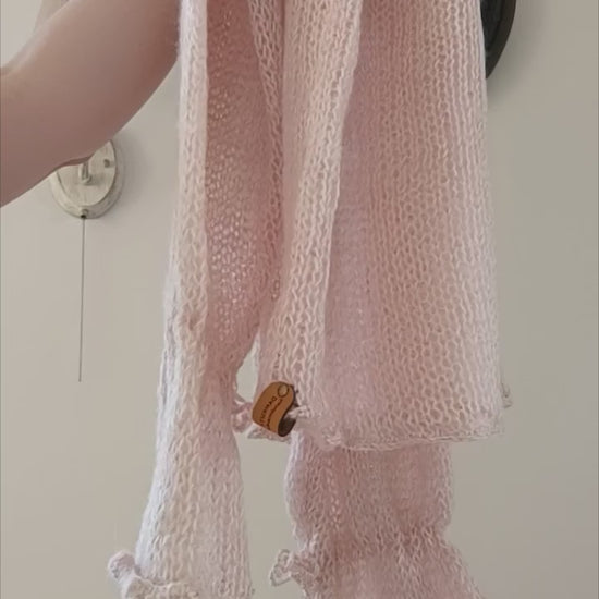 Pink Mohair Blend Sweater: Handmade Knit Pullover with Tie Sleeves M-L