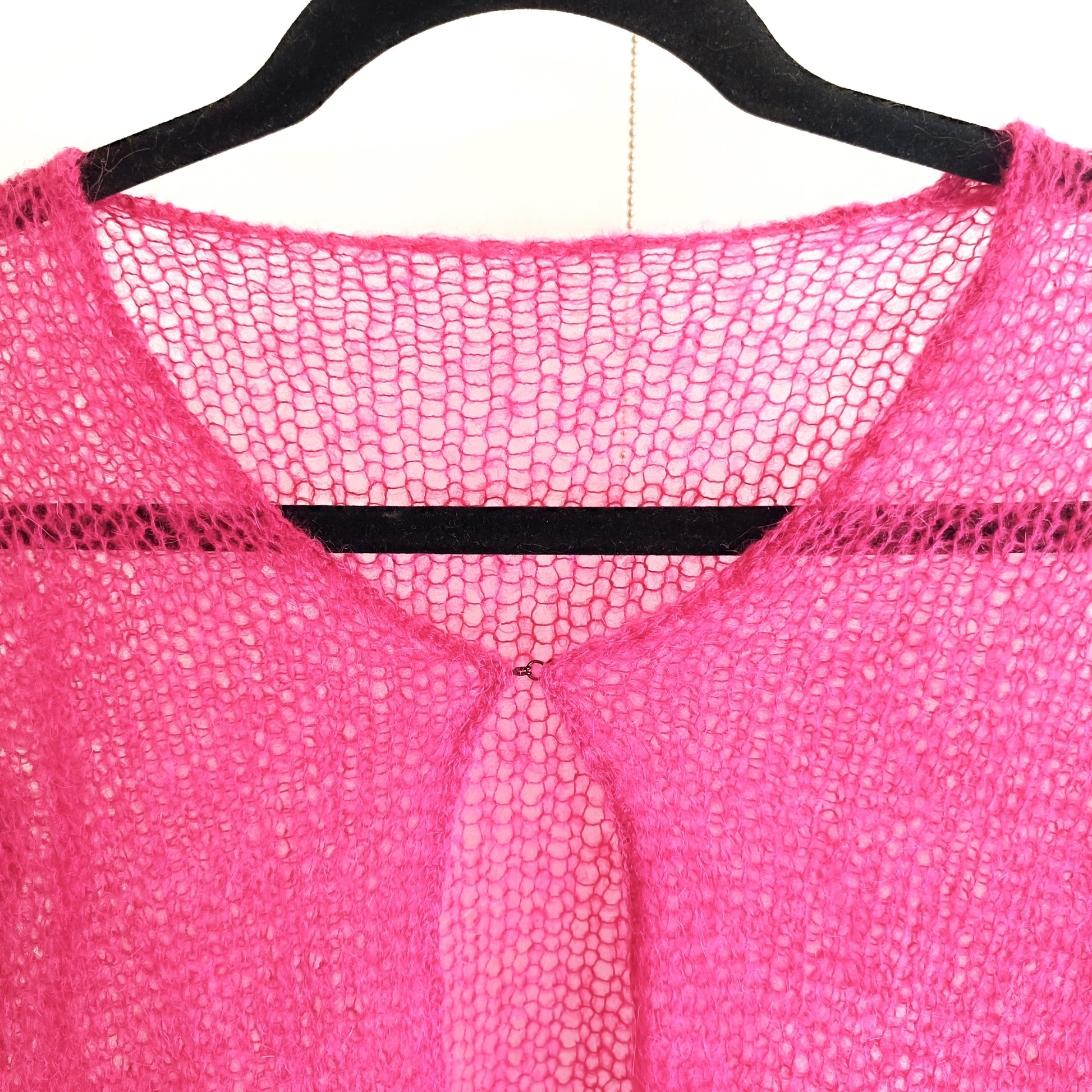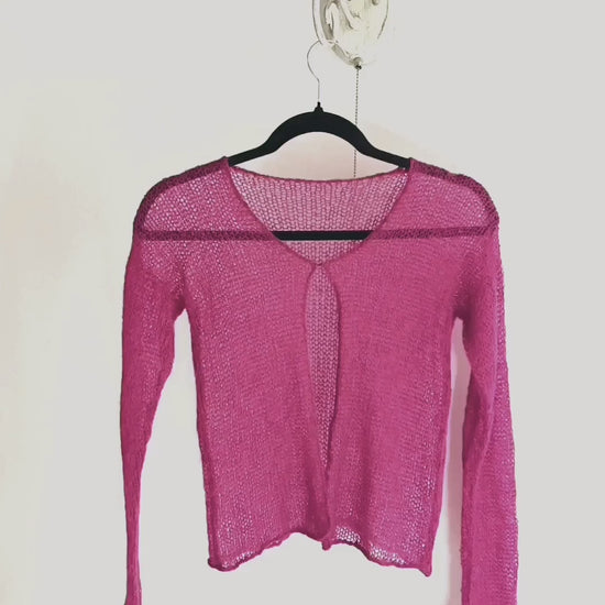 Transparent Lightweight Soft Fuchsia Color NON-ITCHY Mohair Cardigan Hook and eye closure XS-S-M