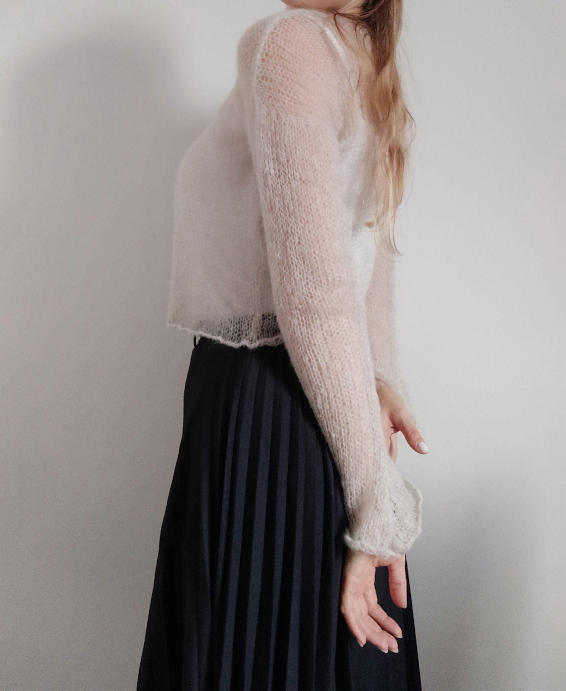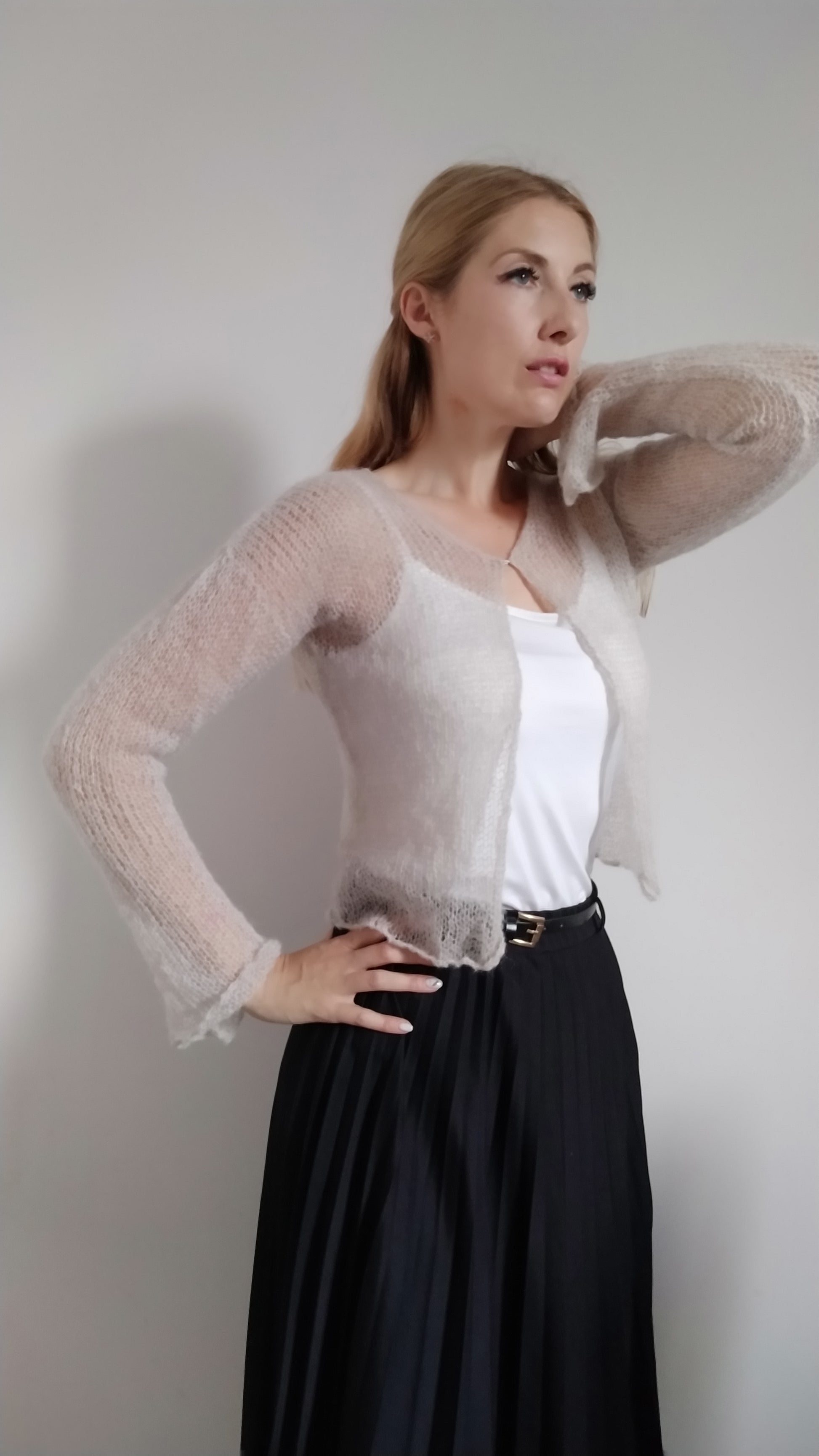 Sheer knitwear, a lightweight knit cardigan and an elegant layering piece. Breathable and light for a cool, windy summer day, yet warm and cozy in winter without feeling bulky. Features and easy hook-and-eye closure. Handmade in Lithuania and ready to ship.