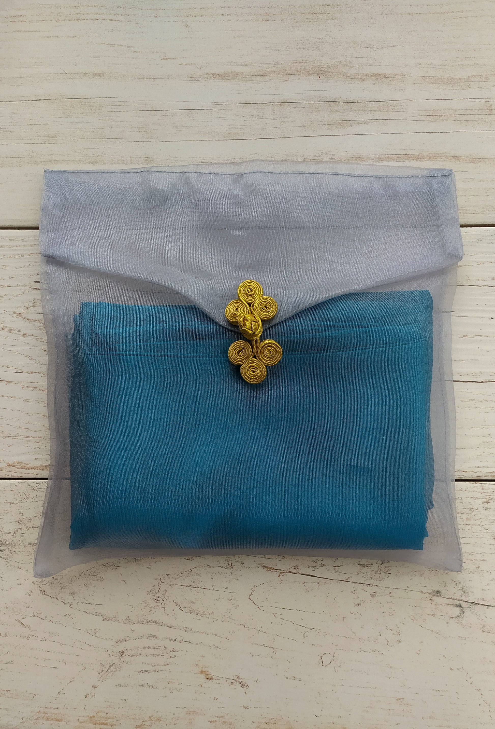 Set of Two 100% Mulberry Silk Pillowcases Peacock Blue Two-sided 19mm